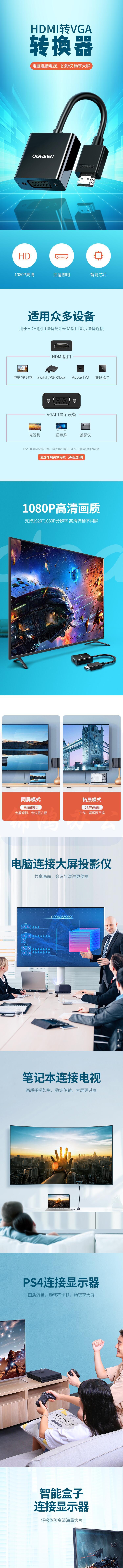 绿联 HDMI转VGA线转换器 高清转接头适配器 CM270 黑色