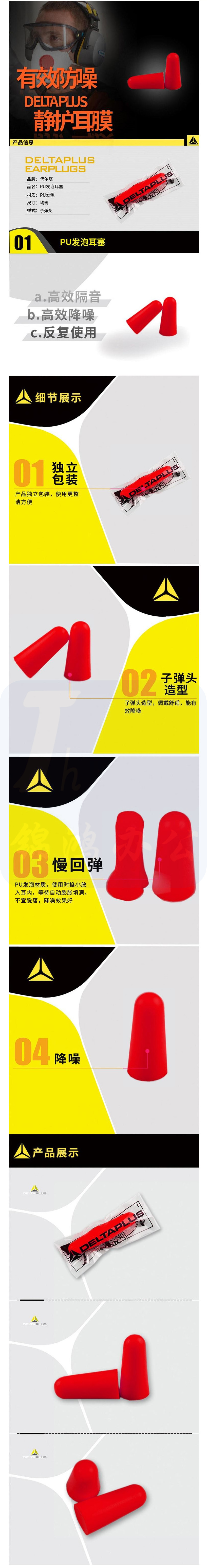 代尔塔 103105 不带线PU耳塞 CONIC200 红色 5盒/箱 耳部防护