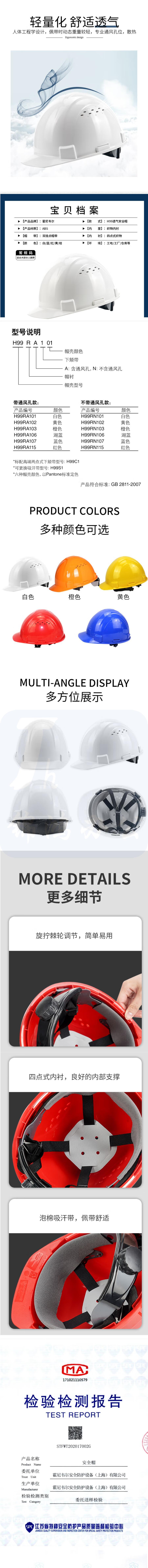 霍尼韦尔 H99RA102S黄色 透气型安全帽