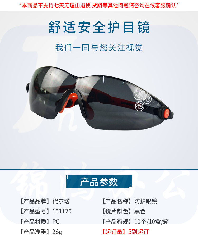 代尔塔 101120 时尚型安全眼镜黑色太阳镜 防雾防刮擦