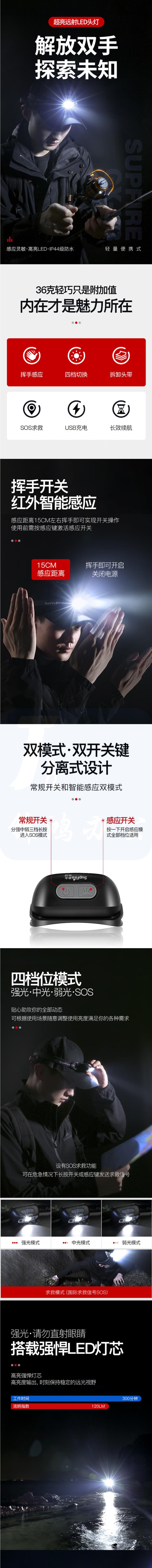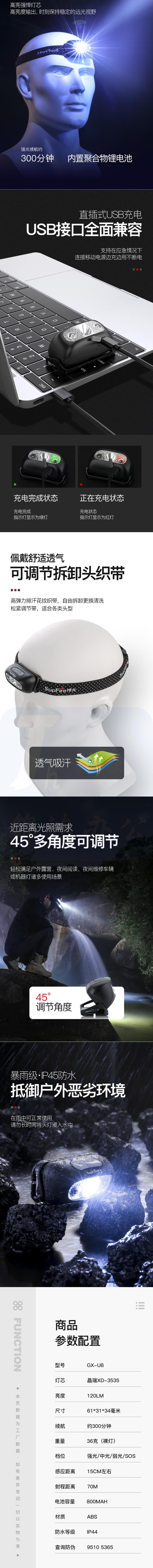 神火 GX-U8 LED强光头灯 USB充电 感应式 头戴式应急灯
