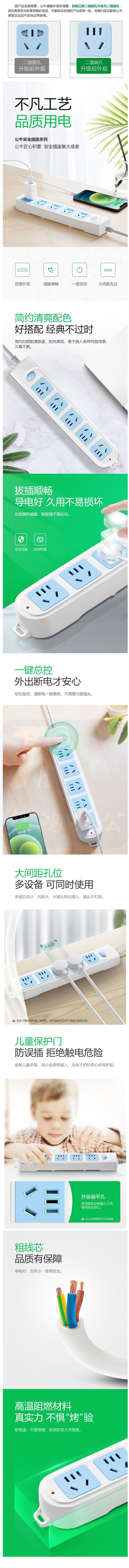 公牛 GN-602 5位总控 3米多位插座 新国标接线板插排