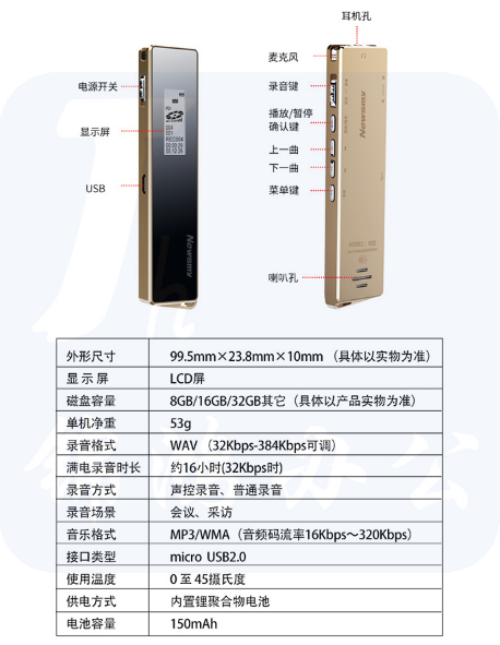 纽曼(Newsmy)录音笔 V03 16G 专业普及微型高清降噪 学习/会议采访取证适用 MP3播放器 哑黑