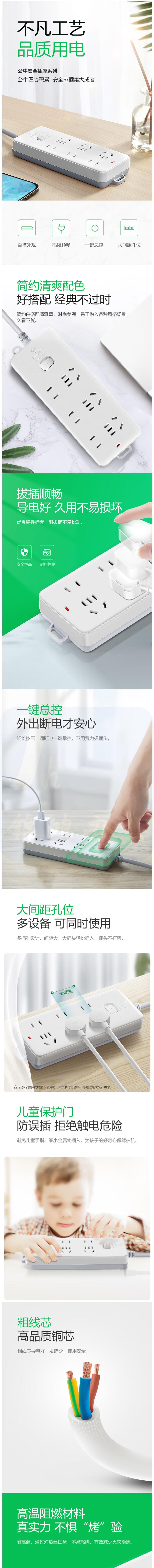 公牛 GN-402 6位总控 3米多位插座 插排 新国标插座/插线板