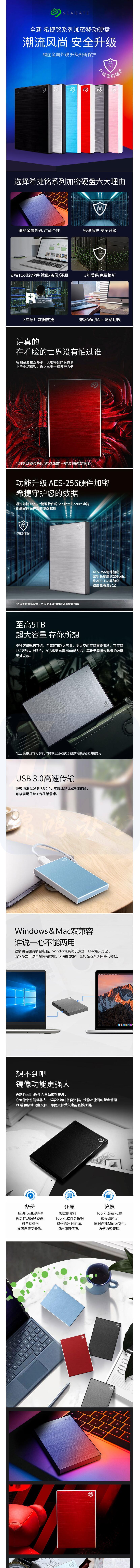 希捷 STKZ5000401 移动硬盘5TB 加密 USB3.0 铭 新款 2.5英寸
