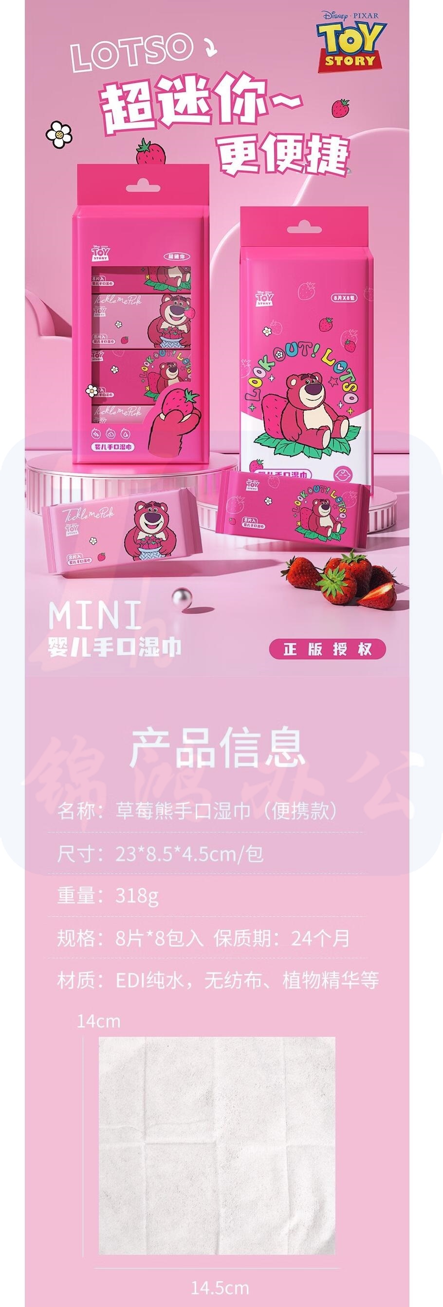 迪士尼 草莓熊 便携湿巾纸 婴儿手口湿巾(8片8包) 货号:LJ