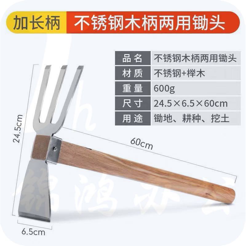 不锈钢木柄两用锄头 加长柄 款