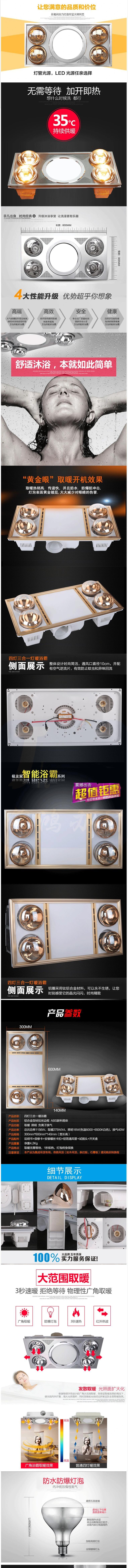 浴霸集成吊顶卫生间取暖灯泡排气扇照明一体 银色 货号:JC