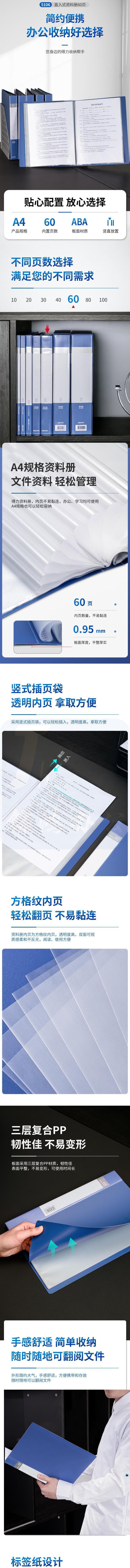 得力A4-60页资料册文件活页收纳册插袋档案文件夹5106