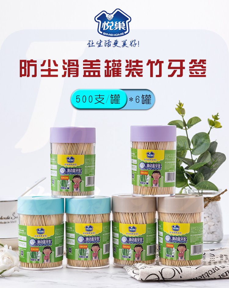 悦巢竹牙签 防尘滑盖罐装牙签量贩装6*500支