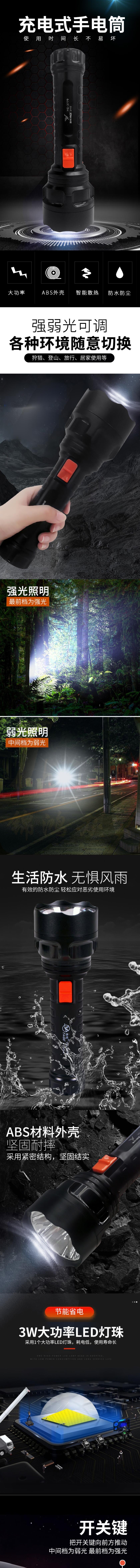雅格 YG-3779 led强光手电筒充电式手提灯
