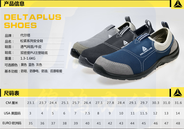 代尔塔 301217劳保鞋男女防砸防刺透气轻便工作鞋防静电安全鞋