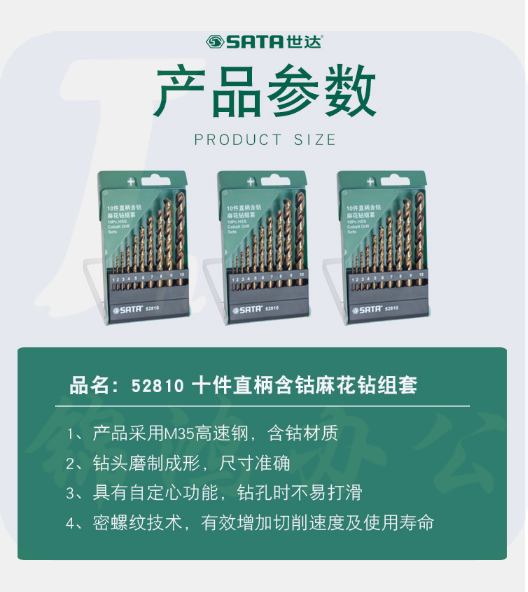 世达(SATA)10件套直柄含钴麻花钻 52810