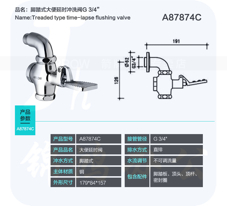箭牌(ARROW) 洁具大小便延时冲洗阀 脚踏式A87874C