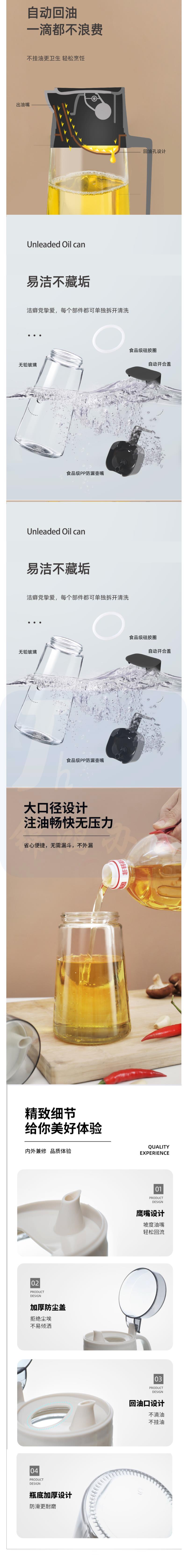 油壶 加厚玻璃油瓶 自动开合大容量油壶 经典款油壶650ML 货号:TXH