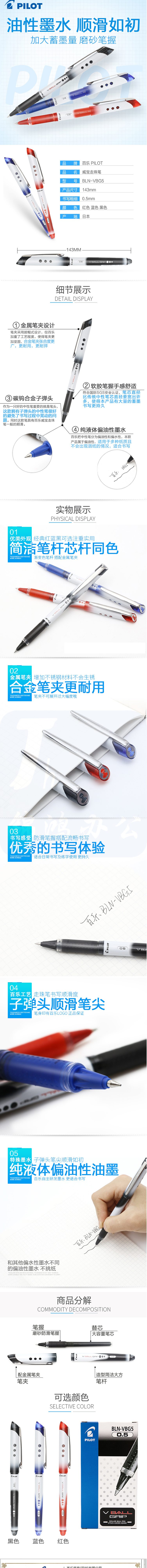 百乐 BLN-VBG5 黑色 6支装 0.5mm 子弹头中性笔防滑签字笔水笔