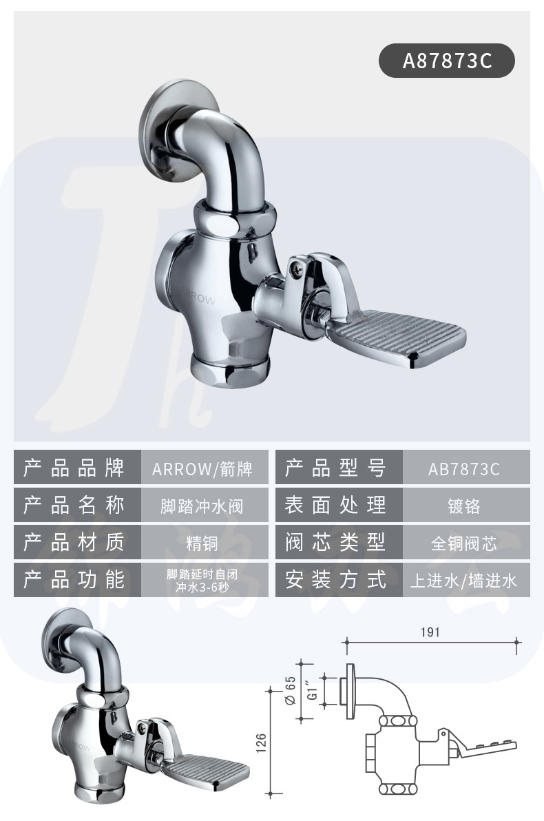 箭牌(ARROW)卫浴蹲便器冲洗阀 A87873C 延时大便阀G1脚踏延时阀蹲厕冲洗阀