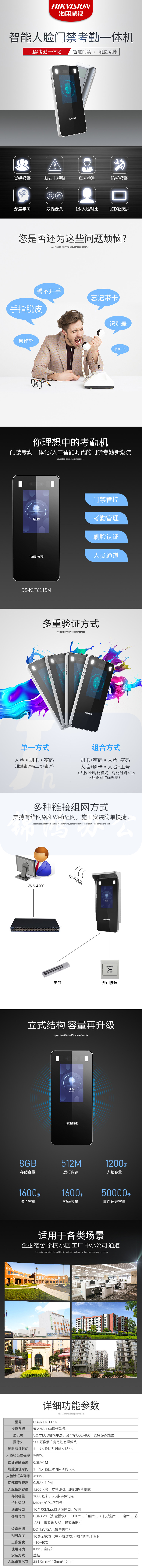 海康威视 DS-K1T8115M 人脸门禁一体机 (含安装、保修一年)