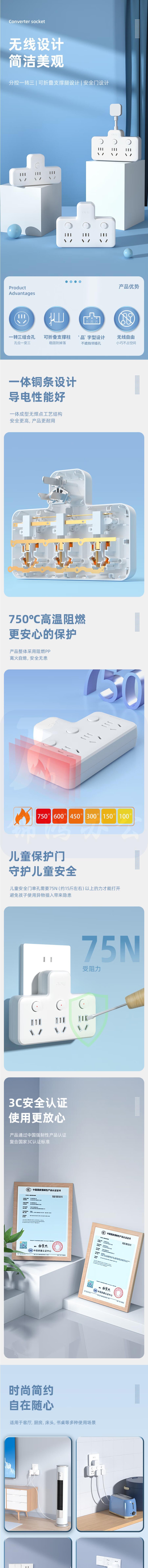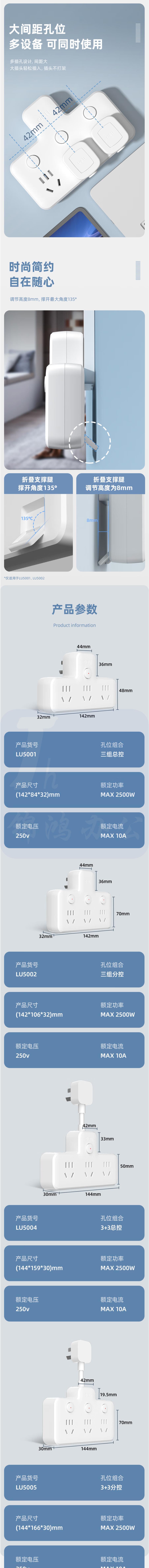 得力 一转多插座 品字形延长线插座/转换插头 一转六分控 LU5005