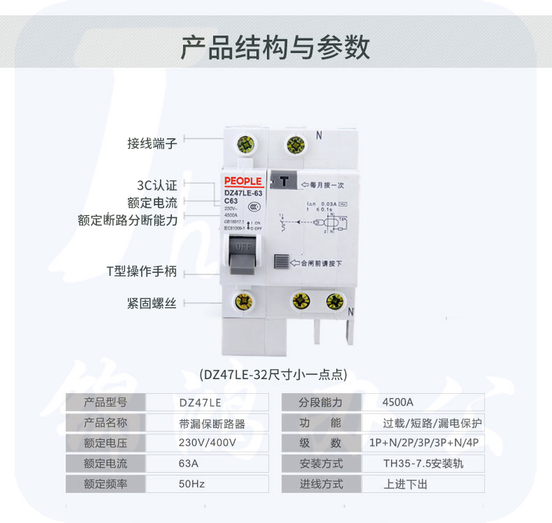 人民电器 DZ47LE-2P25A 拼装 漏电保护器