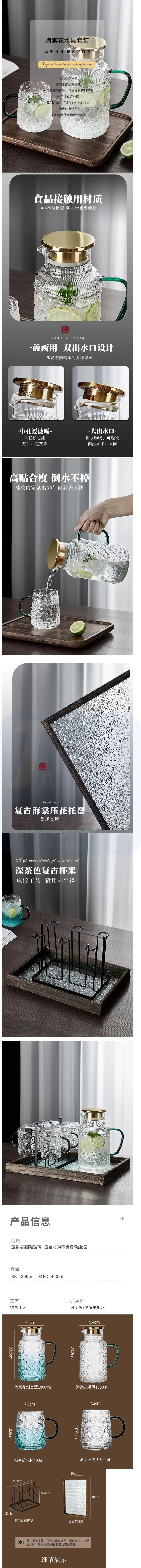 青苹果 复古海棠花冷水壶玻璃茶壶套装 货号:JC