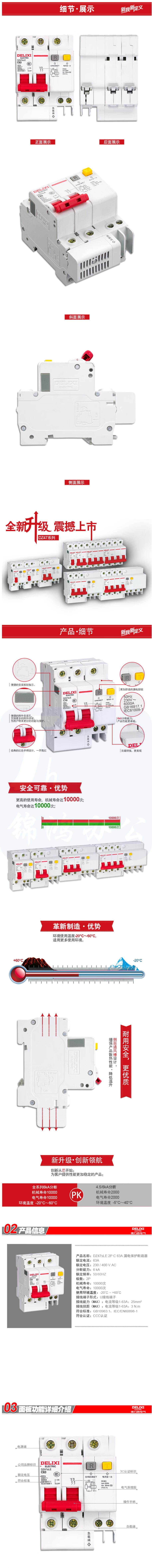 德力西 DZ47SLE-2P C型 50A (拼装) 漏电保护断路器