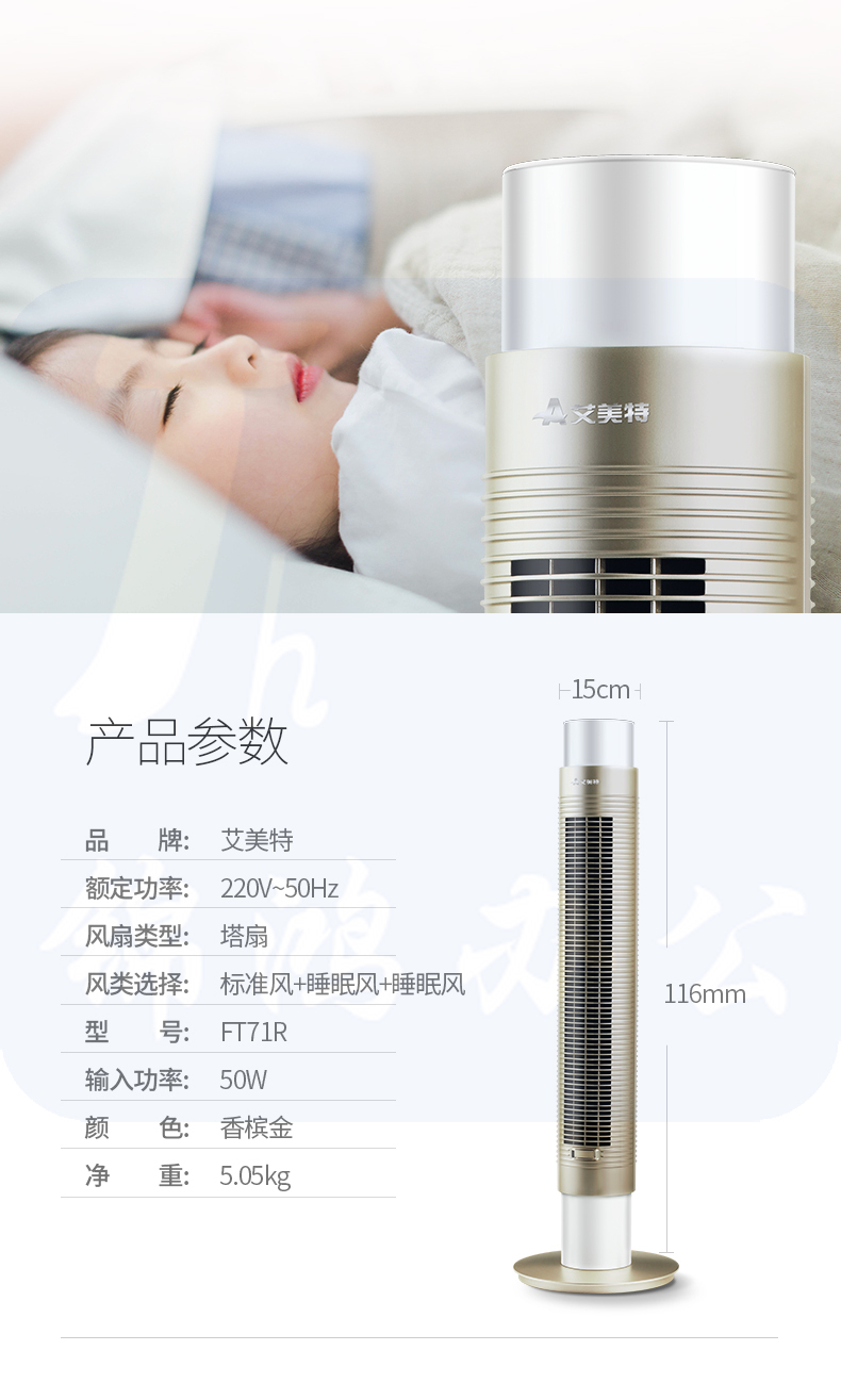 艾美特(Airmate) 高端360旋转遥控塔扇/无叶风扇/电风扇FT71R