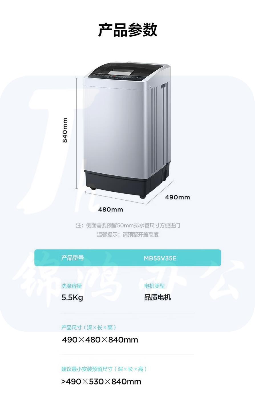 美的(Midea)波轮洗衣机全自动 迷你小型家用洗脱一体 5.5公斤 MB55V35E 货号:NK