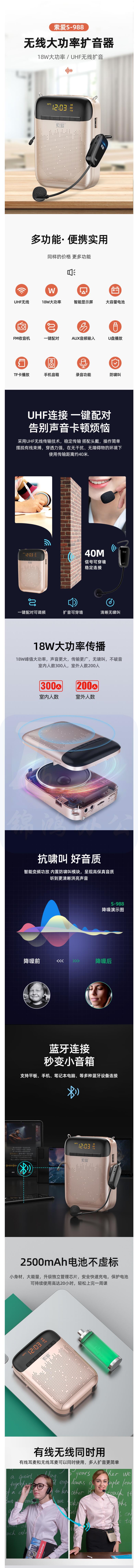索爱(soaiy)S-988 小蜜蜂扩音器UHF无线麦克风