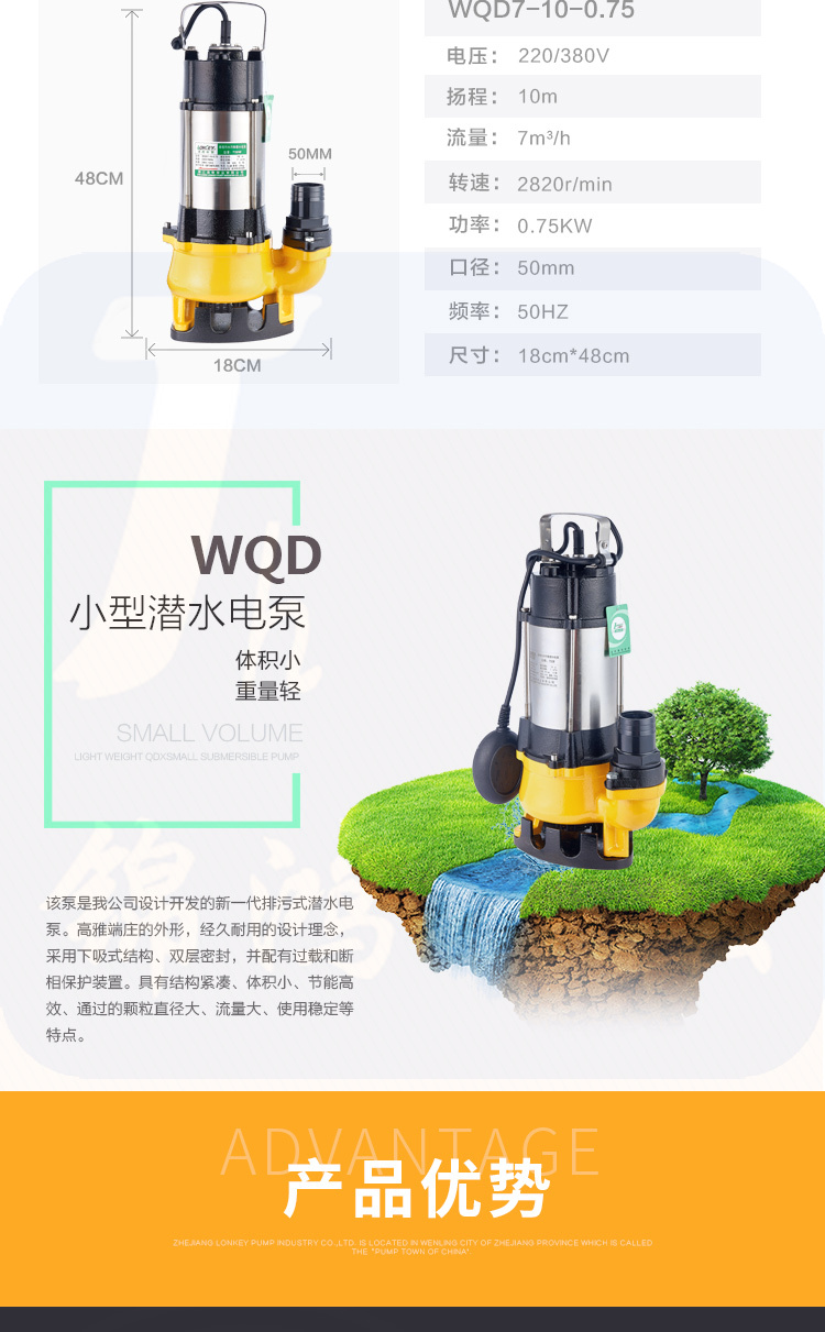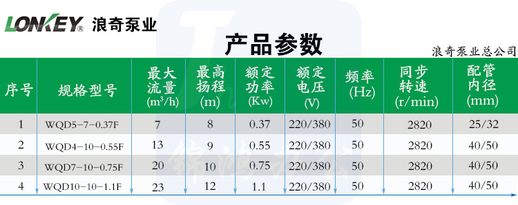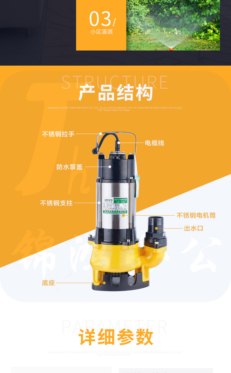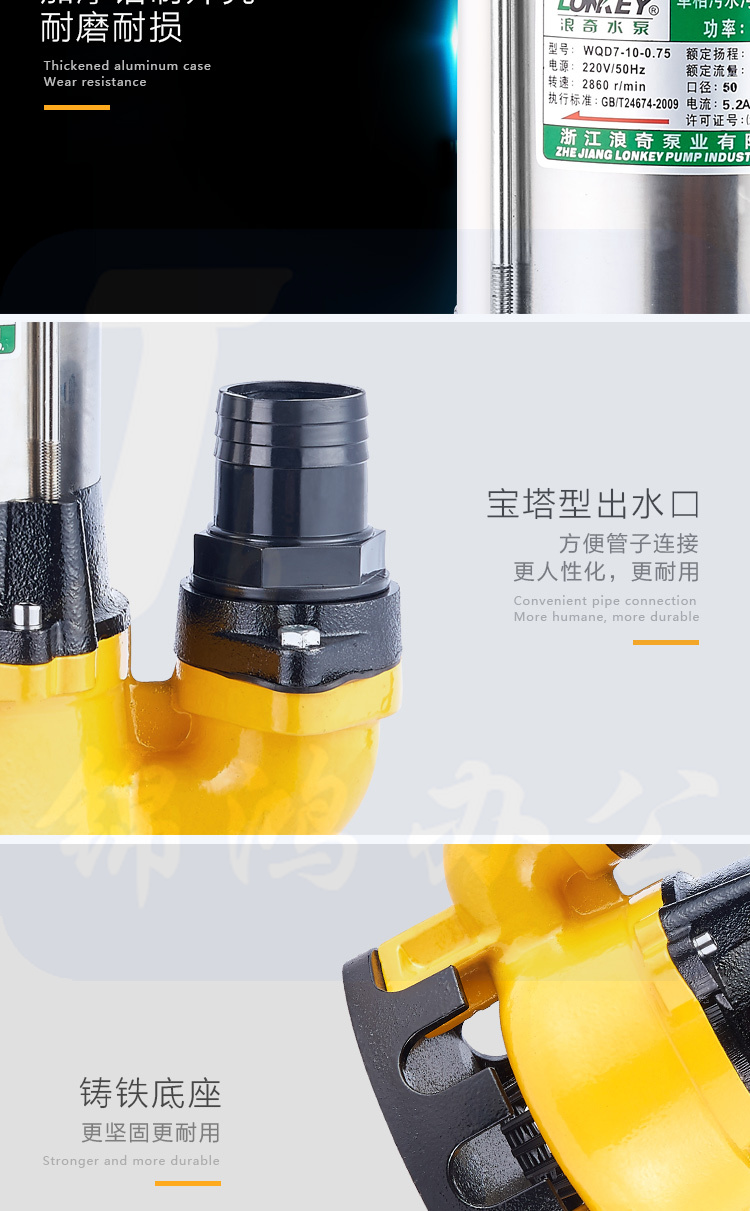 浪奇WQD自动型不锈钢潜水泵220V家用/农用/防汛排污泵污水泵