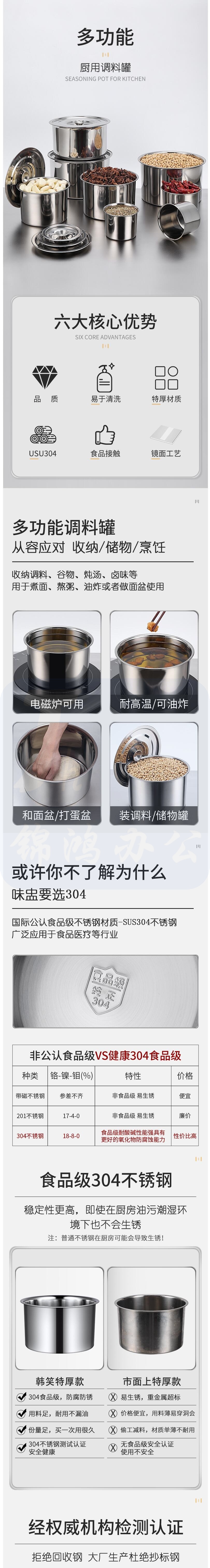 304不锈钢调料罐 调料缸 耐高温调味盅 直径约16cm 高约10cm