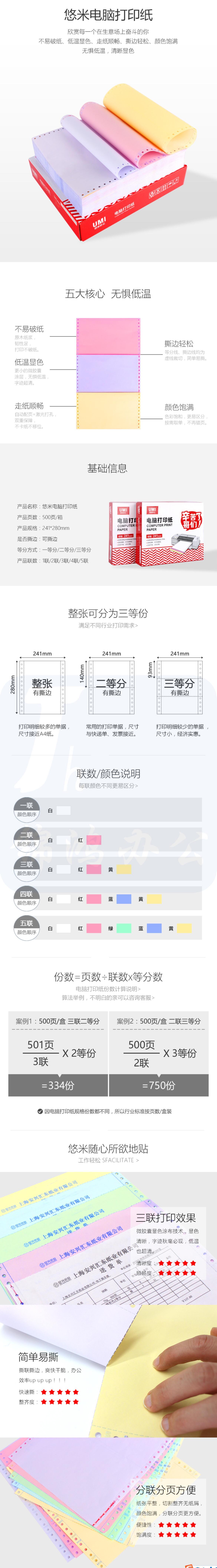 安兴悠米 241-2-1/3S 二联三等分 针式打印纸电脑打印纸1000页(可撕边)
