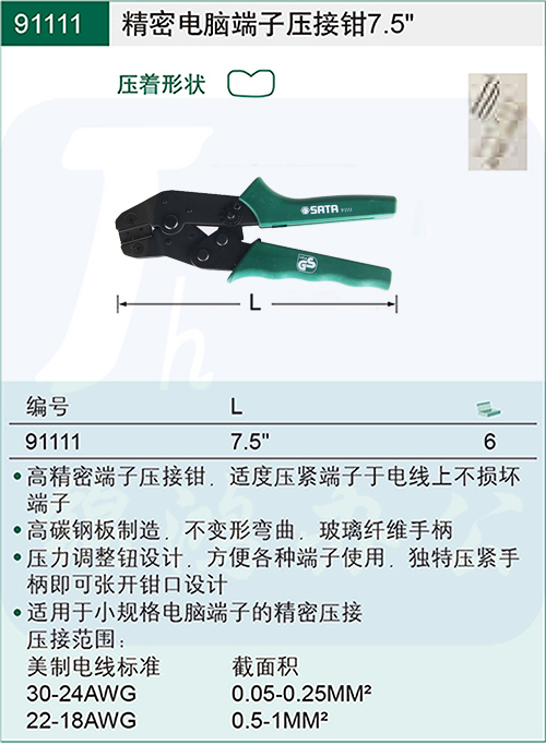 世达(SATA)精密电脑端子压接钳7.5" 91111