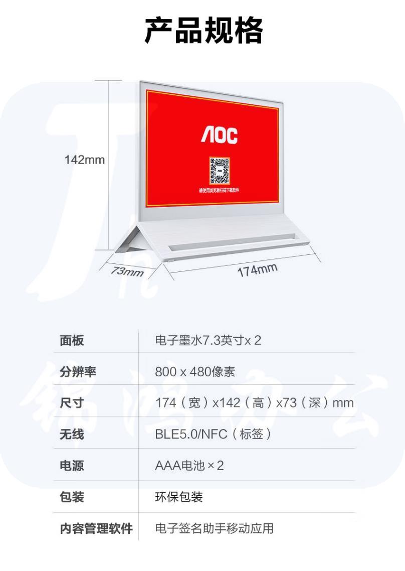 AOC 电子桌牌7.3英寸墨水屏会议桌牌 7E11D/RBWY