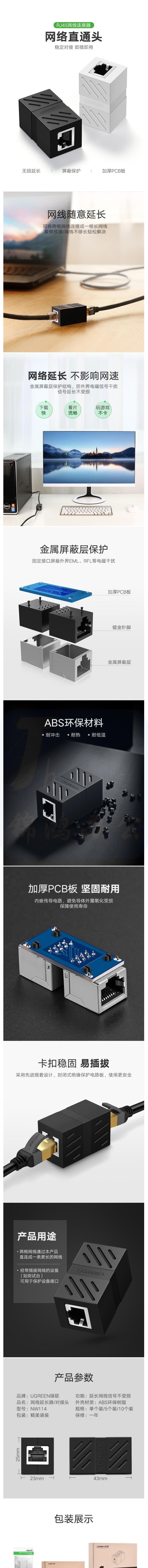 绿联 NW114 网线转接头对接头 网络延长连接器 RJ45网口直通头水晶头双通头接口 白色 20311