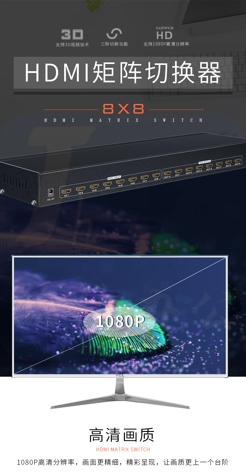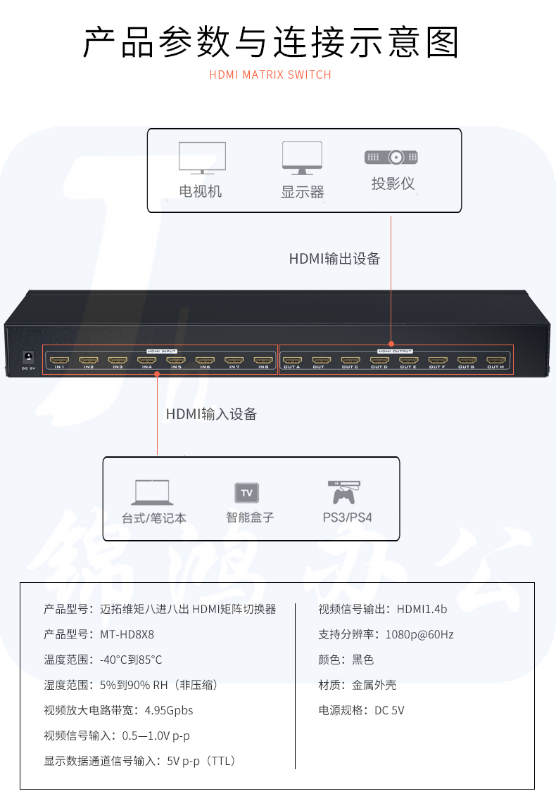 迈拓维矩(MT-viki) HD8X8 8进8出HDMI矩阵切换器分配器视频会议主机高清1080P