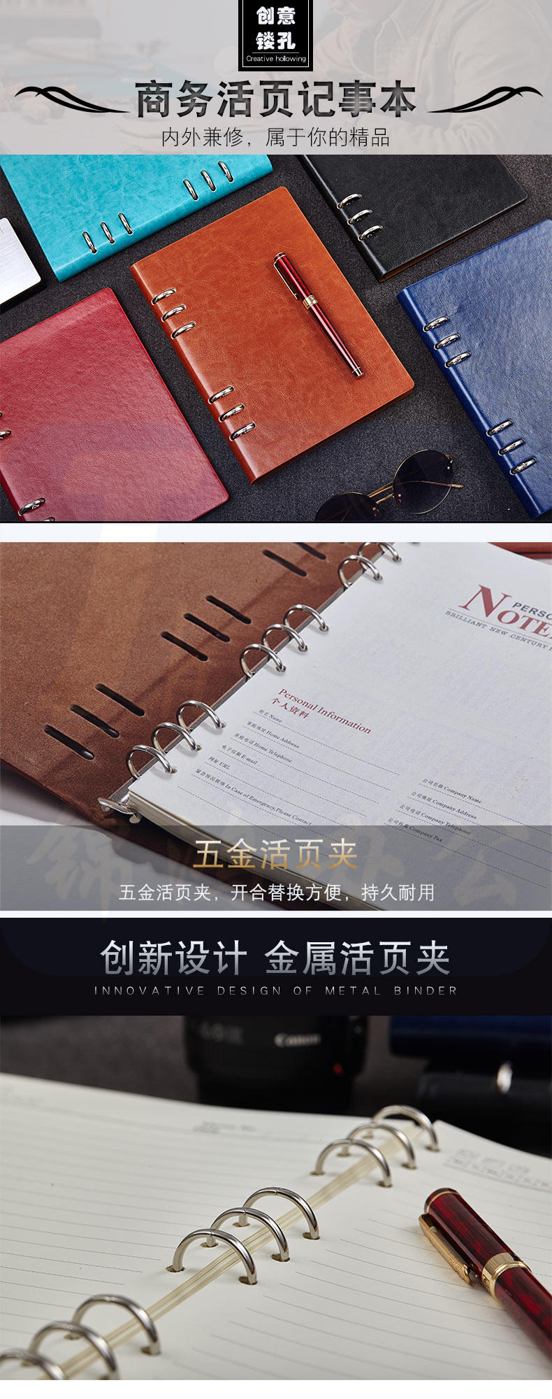 B5 镂孔活页本 棕色 商务笔记本