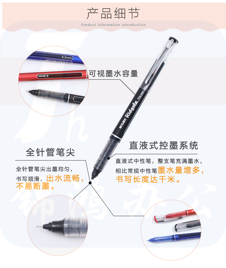 晨光ARP41801 红色直液式全针管0.5mm中性笔签字笔水笔 12支/盒