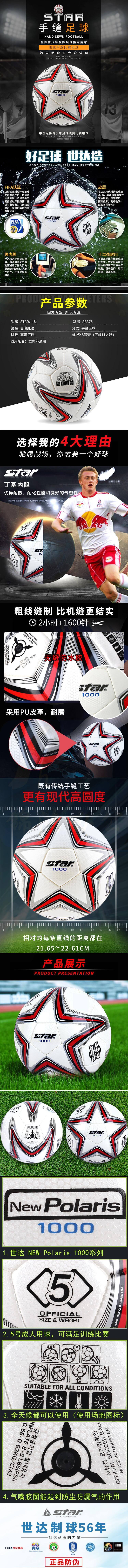 世达 5号足球 超纤革 手缝 足球 SB375F