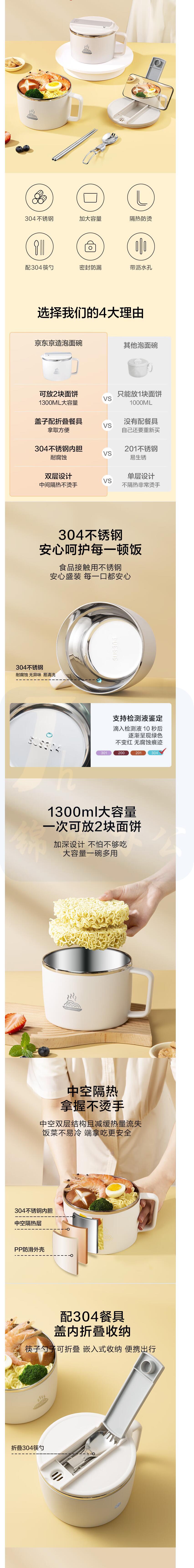 304不锈钢碗 学生上班族饭盒大容量1300ml 【含筷子勺子】 货号:JC