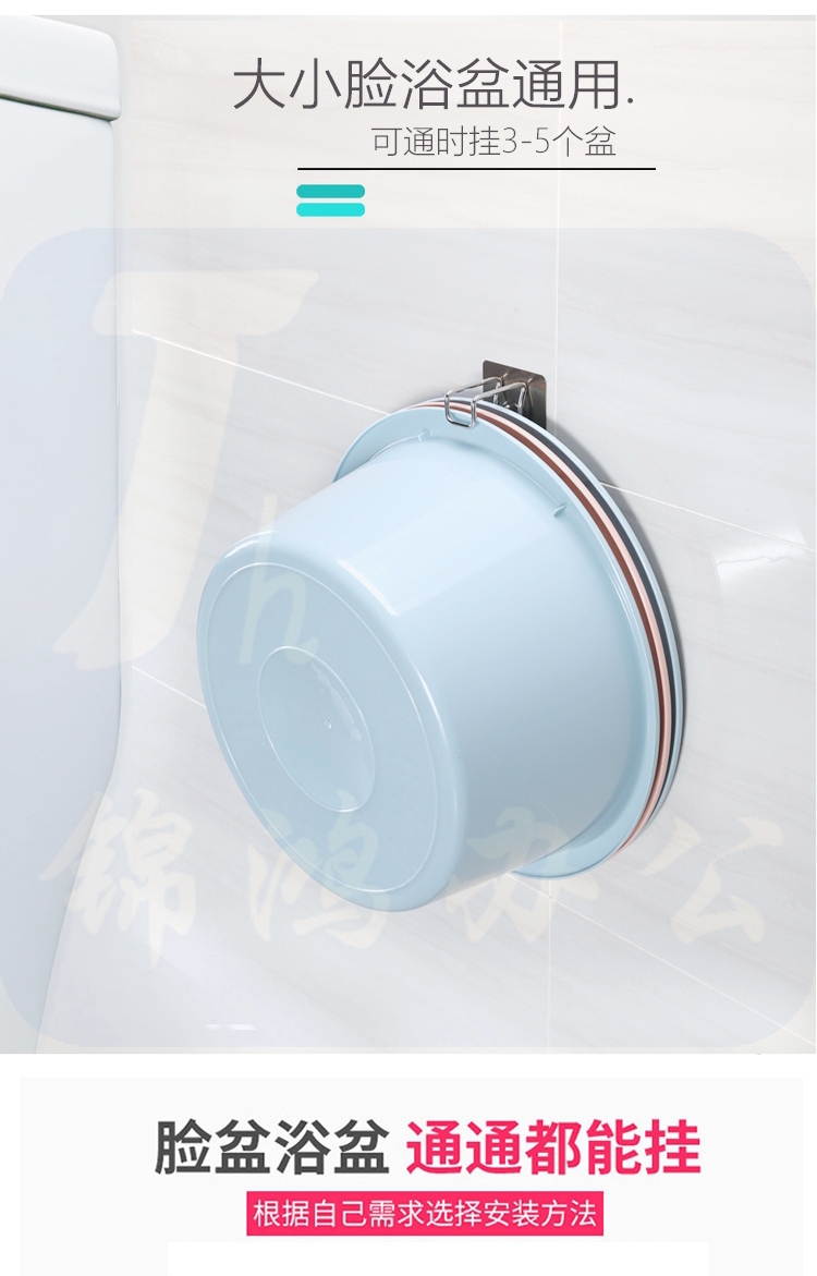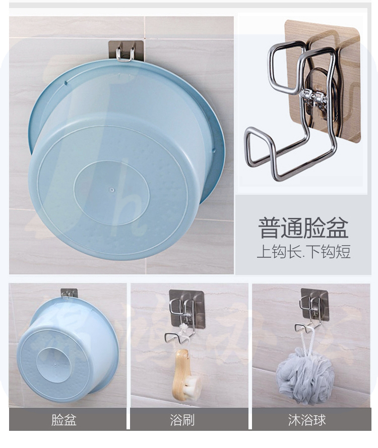 脸盆置物无痕挂钩粘钩 A58529 浴室卫生间厨房免打孔不锈钢挂 2只/组