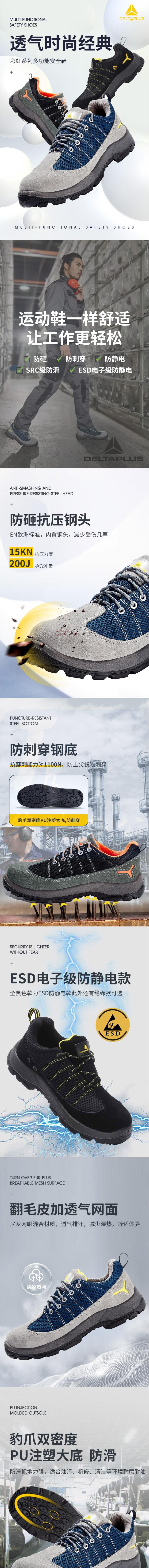 代尔塔 防砸鞋安全鞋防刺穿防静电防滑安全鞋 301232 蓝/灰(38~44码)