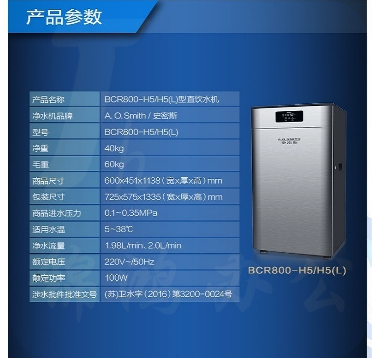 史密斯(A.O.Smith)BCR800-H5 商用反渗透净水中央净水器 货号:JC