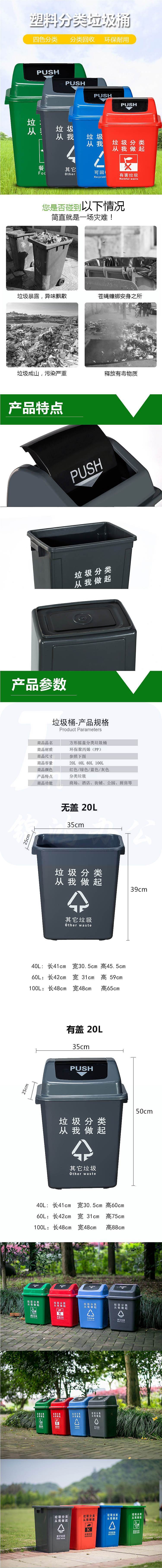 ABEPC 20L 大号四色塑料垃圾分类垃圾桶 红色分类FL006(个)