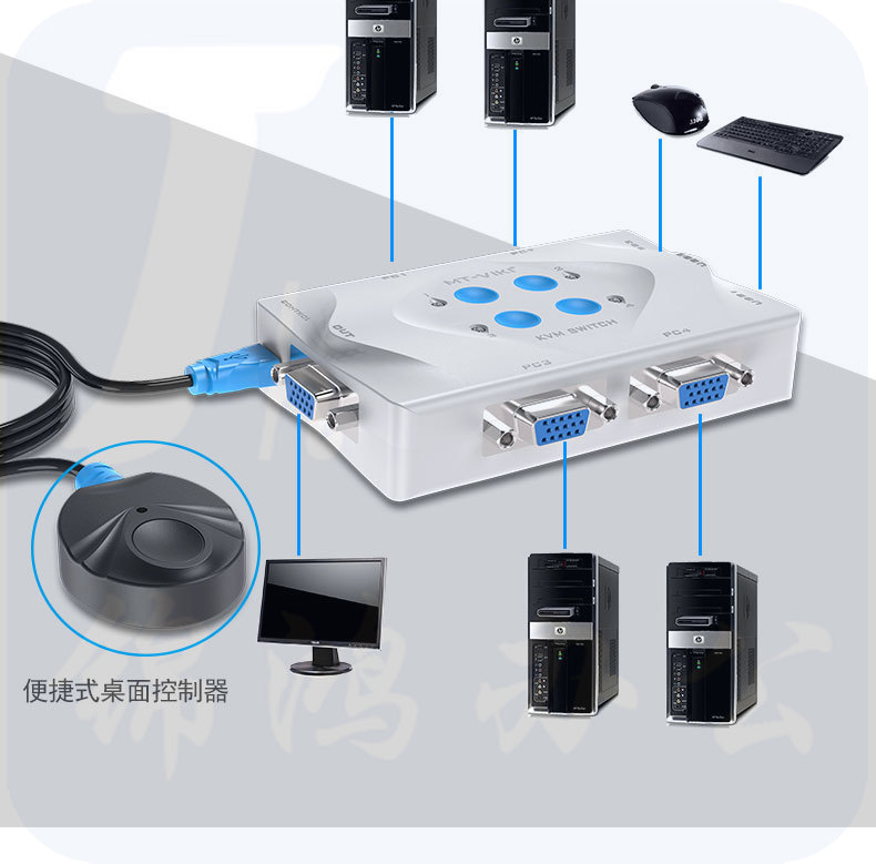 迈拓维矩 MT-401KL 4进1出KVM切换器 4口多电脑鼠标键盘共享器 带桌面线控 热键自动切换