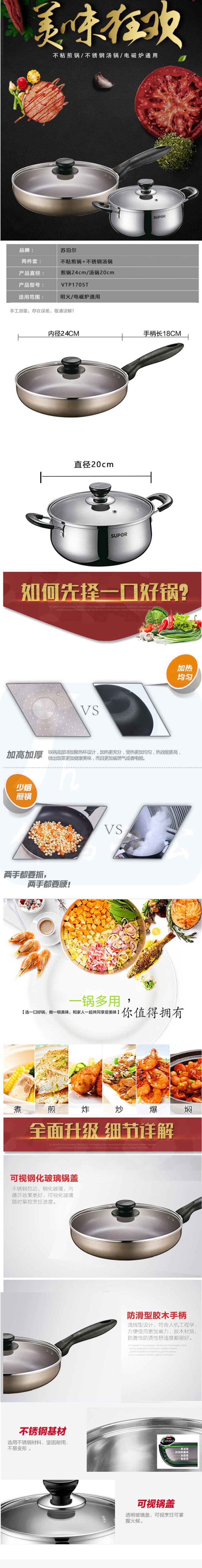 苏泊尔 VTP1705T 厨房两件套24cm平底锅 煎锅+20cm汤锅(2.5L)