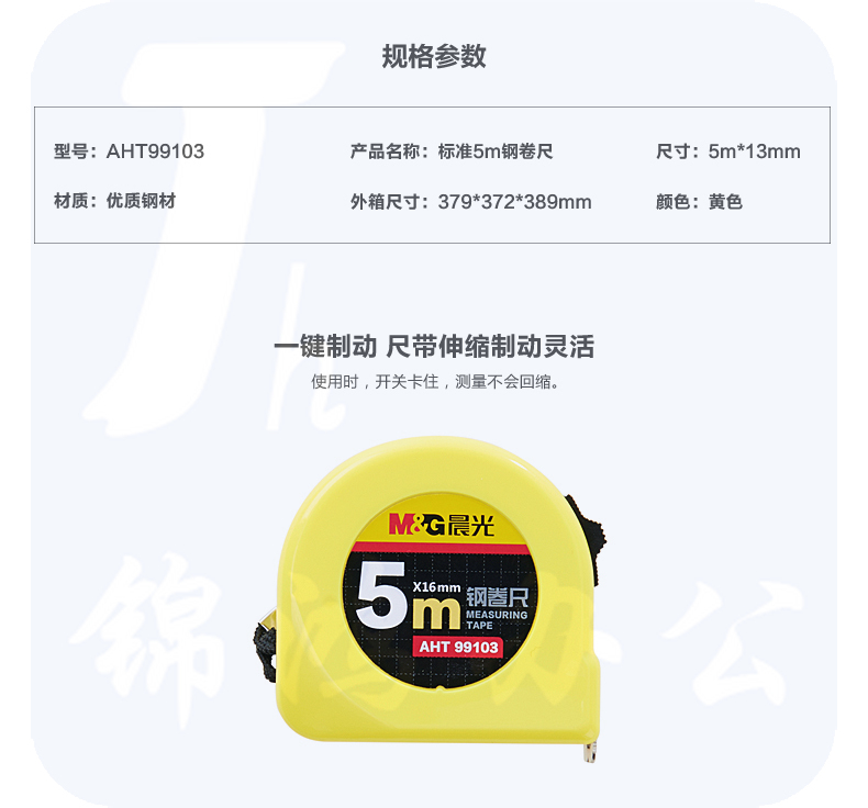 晨光(M&G)5米标准钢卷尺 外壳尺测量工具卷尺AHT99103 一包10个装
