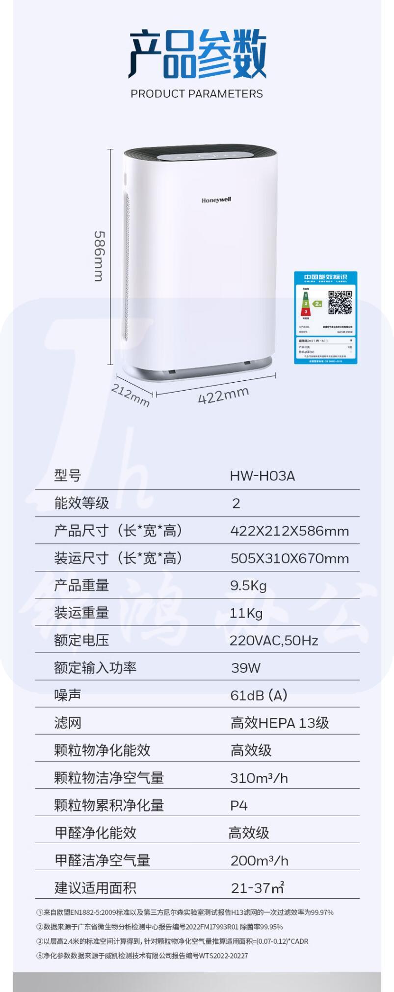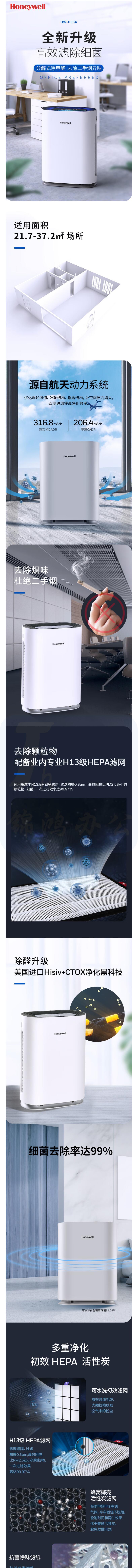 霍尼韦尔 空气净化器 分解除甲醛 除PM2.5二手烟除菌除异味 HW-H03A