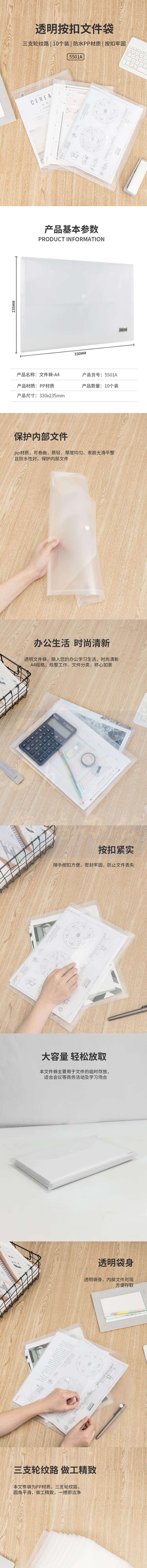 得力 5501 A4加厚透明文件袋 按扣资料袋10只/包 单个价格