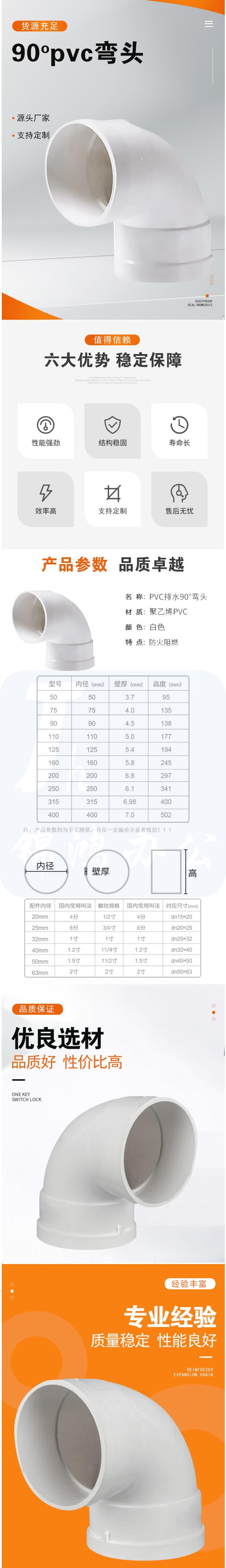 PVC排水管90度弯头 PVC90°直角弯头40mm